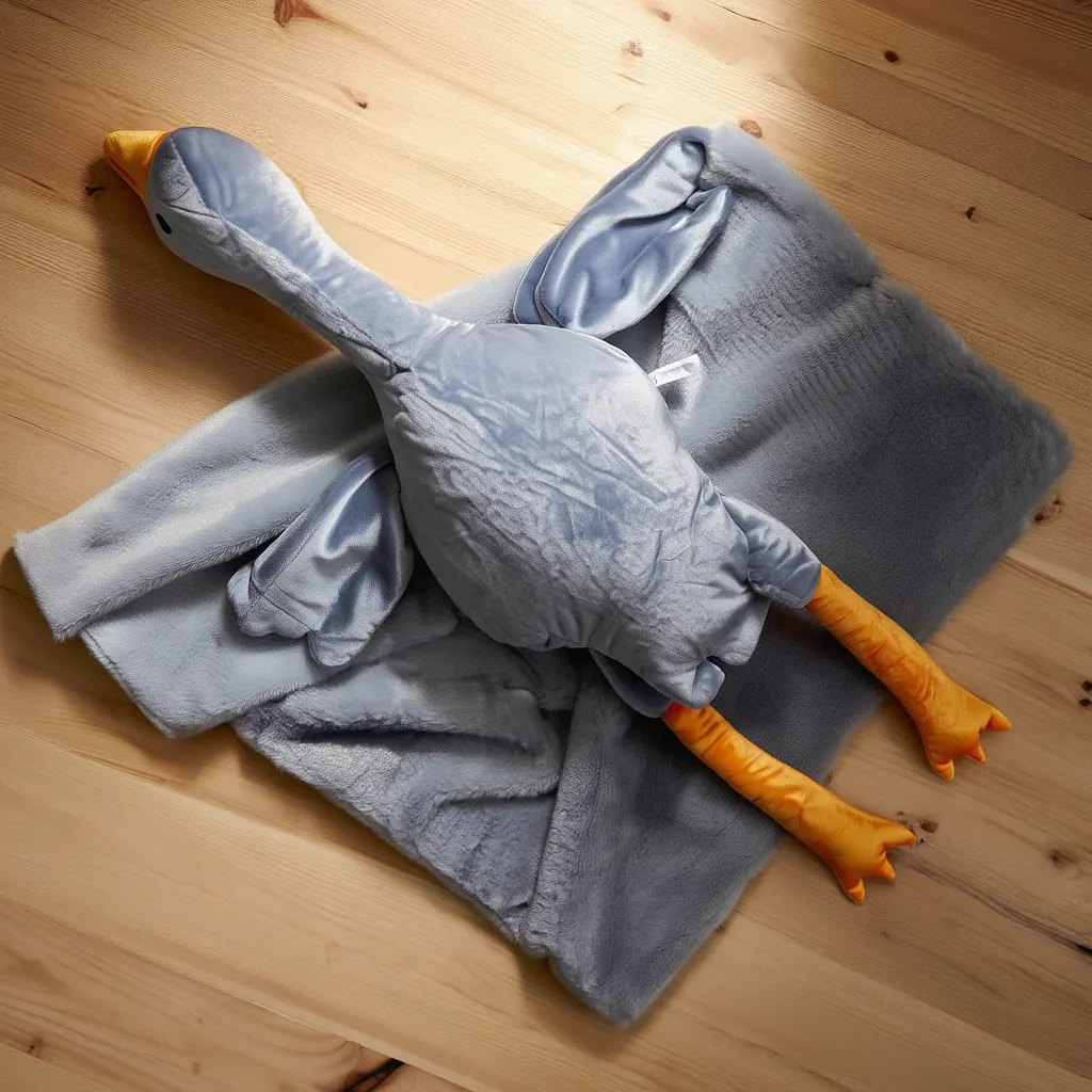 Плед-игрушка и подушка Гусь-обоймусь станет настоящим любимцем вашего ребенка. В одном аксессуаре объединены мягкая игрушка, уютный плед и подушка, что делает его идеальным для дома, отдыха, сна или путешествий. Такой аксессуар легко взять с собой в дорогу, на дачу или в гости — у ребенка всегда будет под рукой любимая игрушка и теплый плед.