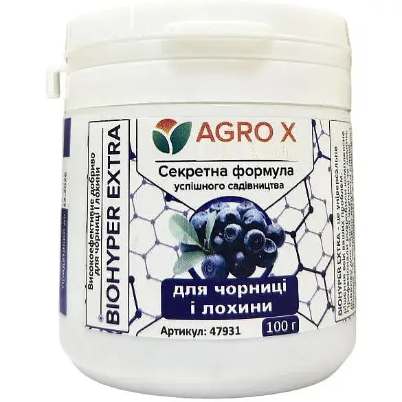 Минеральное удобрение Agro-x Biohyper extra - это универсальное решение всех ваших проблем. Профессионалы разработали комплексное удобрение для вашей черники и голубики, больше не нужно покупать несколько препаратов, смешивать их в пропорциях и после этого надеяться на хороший урожай. Вы покупаете удобрение Biohyper extra и используете только его, после чего можете быть уверенными в том, что урожайность значительно повысится.