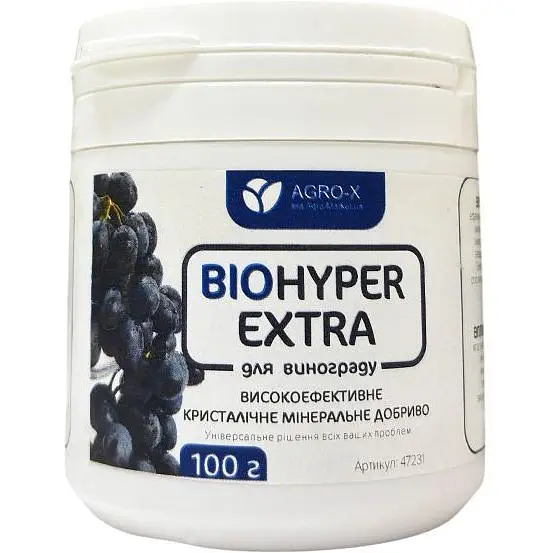 Biohyper Extra - это отличное и очень эффективное удобрение минерального типа для вашего винограда. Решение на рынке универсально, вы используете только это удобрение и получаете всегда оптимальный результат своего урожая. Виноград является довольно капризным и требовательным растением, поэтому без специального ухода он может просто заболеть и засохнуть.