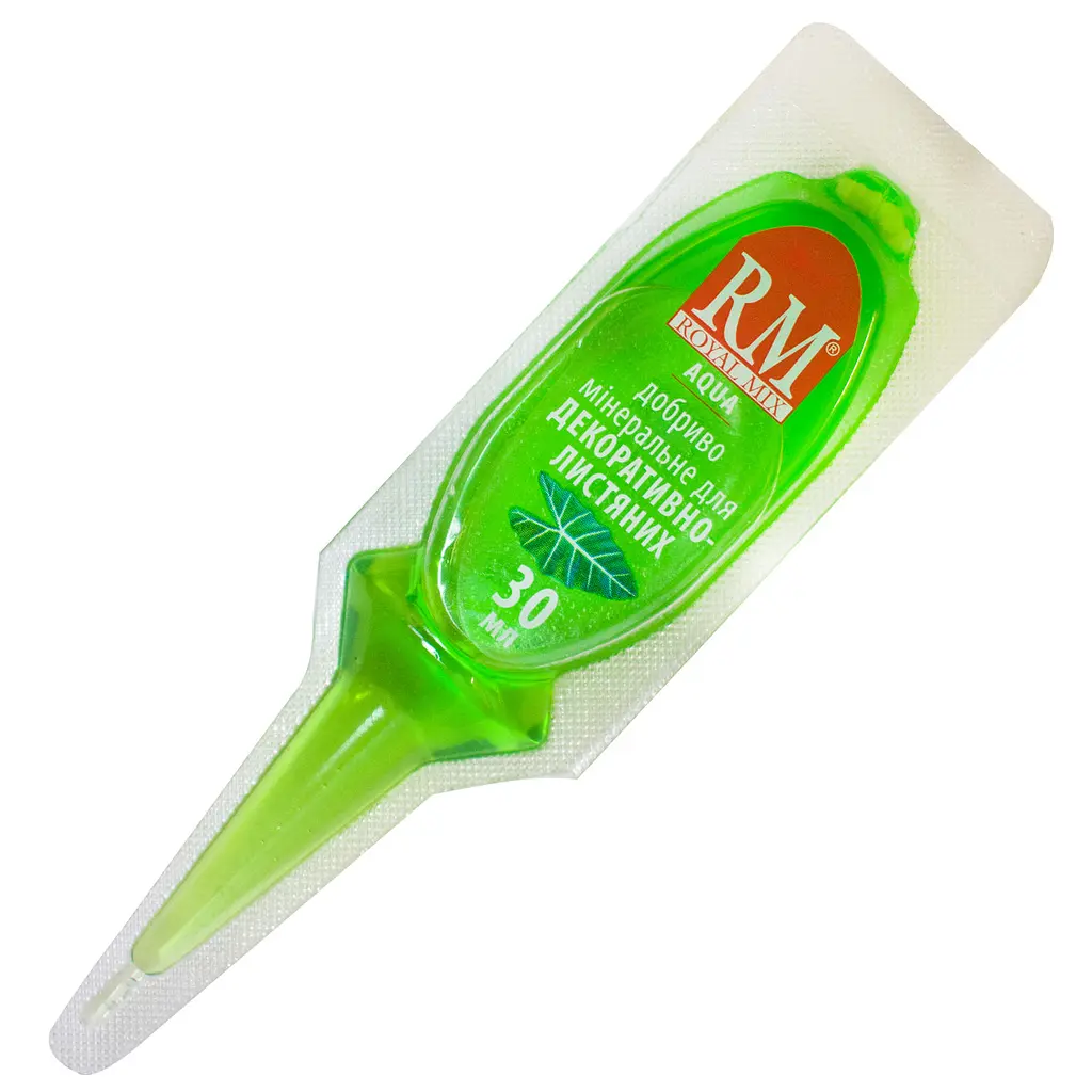 Минеральное удобрение для декоративно-лиственных Royal Mix - это готовое к использованию минеральное комплексное удобрение, усиленное добавлением витаминов, в виде водного раствора для деликатного капельного питания всех видов декоративно-лиственных растений.