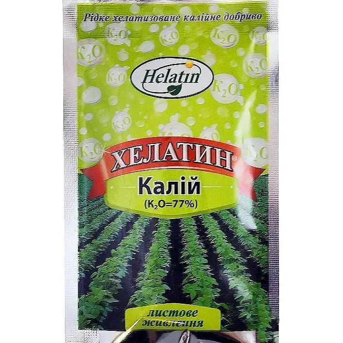 Минеральное удобрение Киссон Хелатин Калий - жидкое калийное удобрение создано для листовой подкормки растений с целью обеспечения их калием, возвращения им здорового внешнего вида. Препарат характеризуется 77% содержанием калия.
