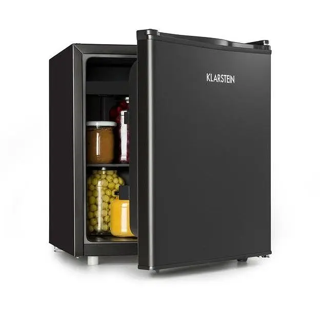 С полезной емкостью 46 литров холодильник Klarstein Obsidian предлагает пространство для всех видов пищи. В двух дверных отделениях вы найдете место для хранения бутылок и стаканов, а также есть даже отделение для льда. Obsidian можно легко разморозить, нажав кнопку на термостате. Мини-холодильник оснащен поддоном для сбора конденсата.