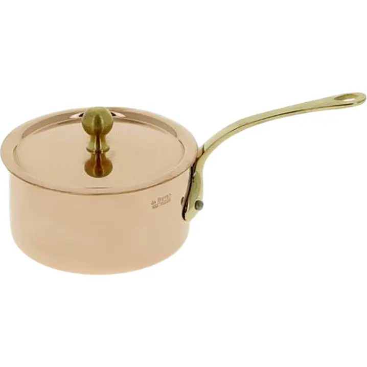 Мини-сотейник с крышкой De Buyer Inocuivre имеет практичную ручку и изысканный медный блеск.