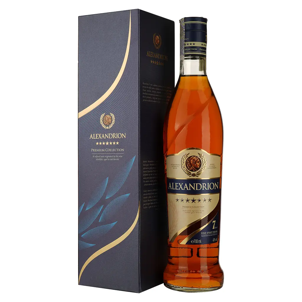 Крепкий алкогольный напиток Alexandrion 7 звезд золотисто-янтарного цвета имеет округлый, многогранный, сбалансированный, бархатистый вкус со сладкими нотками золотистого муската и оттенками зрелой древесины, а продолжительное послевкусие будоражит вкусовые рецепторы. В ярком букете сочетаются сладковатые ароматы сухофруктов и меда.