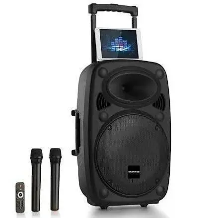 Система auna Pro Streetstar 2.0 15 PA предназначена для мобильного использования на мероприятиях .Хорошее оснащение: прочный корпус из АБС-пластика может выдержать удары, а удлиненная 100-сантиметровая ручка тележки позволяет даже высоким ди-джеям удобно тянуть систему. Сменные радиоантенны УВЧ особенно практичны. Мощный аккумулятор емкостью 7,2 Ач обеспечивает от 3 до 5 часов непрерывной работы, а индикатор уровня заряда предотвращает неожиданные перерывы в передаче. Конечно, Streetstar 2.0 15 можно легко подключить и к источнику питания. Чтобы всегда было ясно, что в данный момент воспроизводится, система PA имеет 4-строчный дисплей для отображения информации о названии и исполнителе (теги ID3). Полноценный пульт дистанционного управления позволяет управлять даже на расстоянии.