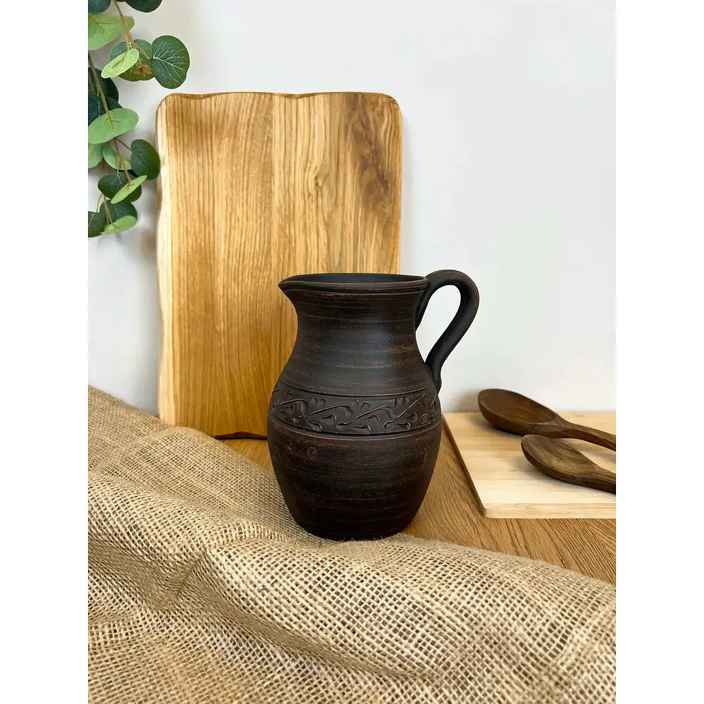 Глиняный молочник объемом 1,5 литра с декоративной росписью - традиционная посуда для подачи молока, сливок, кефира или компота. Изготовлен вручную из натуральной глины и покрыт пищевой глазурью. Декоративное оформление придает изделию аутентичный вид и украсит любой стол, создавая атмосферу уюта и тепла.