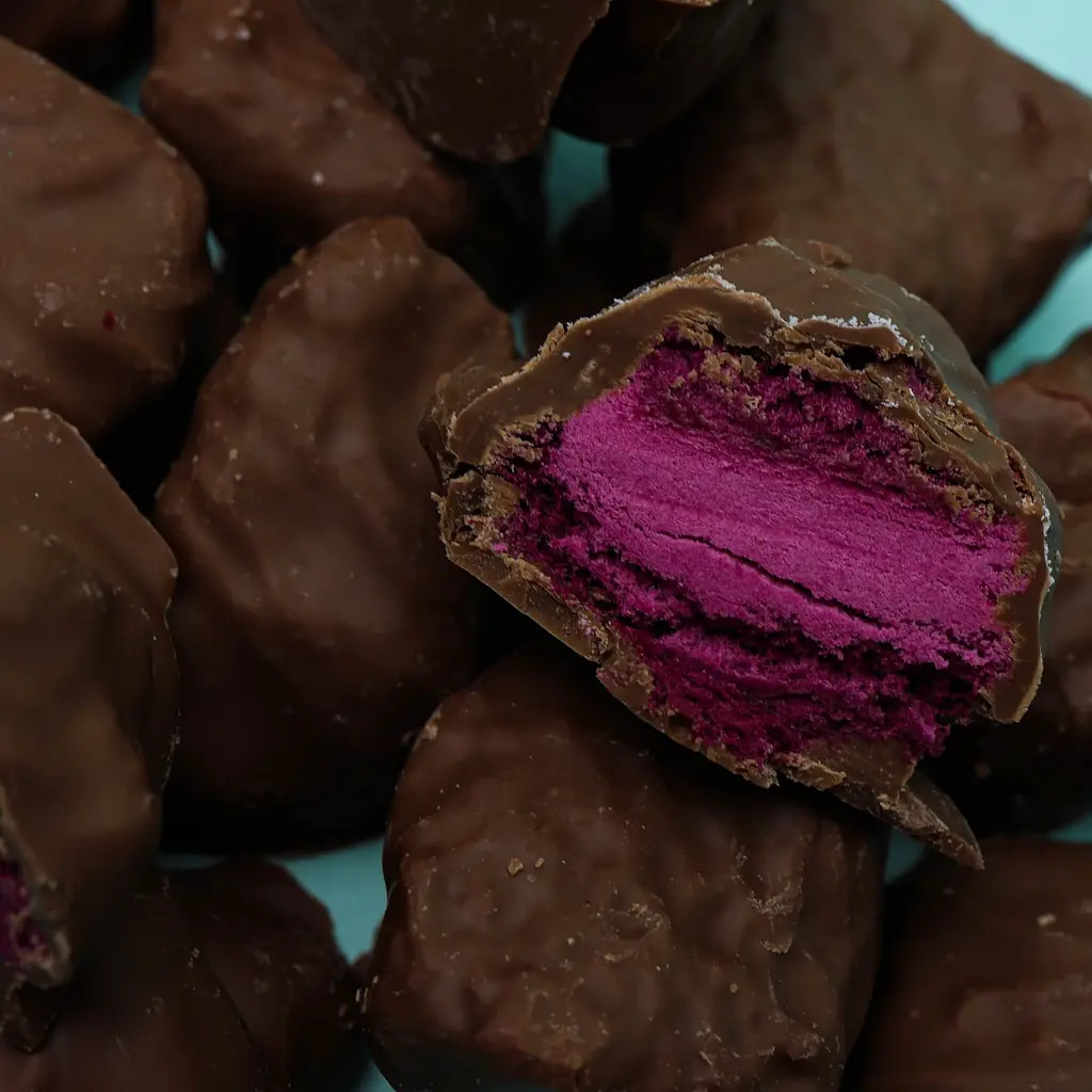Монахиня, ежевика и малина в одном десерте. Это сухое мороженое напоминает горсть новых лесных ягод, спрятанную под слоем молочного шоколада. Насыщенный, ароматный и очень ягодный вкус, который дарит летнее настроение в любое время года.
