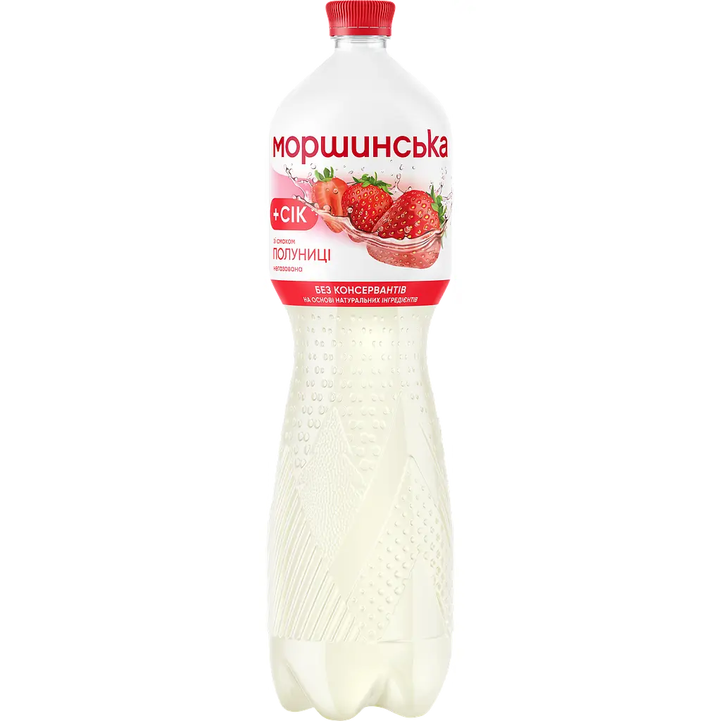 Вода природная минеральная "Моршинская" 92,6%, сироп глюкозно-фруктозный, сок яблочный восстановленный из концентрированного сока 0,9%, кислота: лимонная кислота, сок клубничный восстановленный из концентрированного сока 0,1%, натуральные ароматизаторы, сок яблочный концентрированный карамелизированный