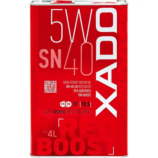 XADO Atomic Oil 5W-40 SN Red Boost - высококачественное топливоэкономическое моторное масло. Содержит Ревитализатор RF[10.5]* и инновационную присадку Red Boost.