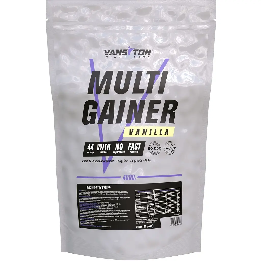 Мультигейнер Vansiton помогает решить две проблемы - ускоренно набрать массу тела даже тем спортсменам, для которых это составляет неразрешимую проблему, а также повысить физическую выносливость и быстро восстановить энергетические запасы после интенсивных тренировок.