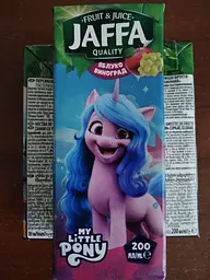 Мультивітамінний нектар з м'якоттю Jaffa Поні-Трансформери це знахідка, коли треба взяти щось солоденьке в дорогу. Розглядати це як корисний сік чи нектар не варто, тому що цукру в цій маленькій упаковці 4 чайних ложки, а для дошкільнят це майже добова норма. Різниця між соком у пакетах та нектаром лише у кількості води для відновлення, та іноді збагаченням додатковим цукром та вітамінами. До продукції Jaffa завжди була довіра, цей бренд на українському ринку вже не одне десятиліття, тому якщо дійсно необхідно придбати подібний напій, то краще вибрати перевіреного та надійного виробника. Дітям подобаються яскраві упаковки, серед яких можна вибрати теми як хлопчикам так і дівчаткам. Склад та поживна цінність на фото.