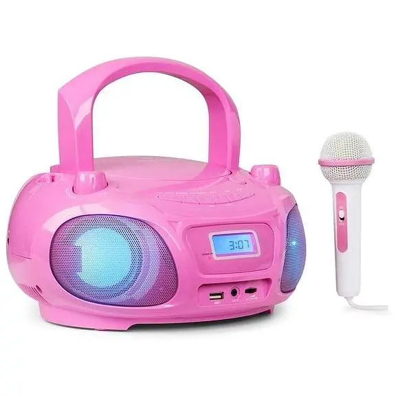 Roadie Sing CD Boombox FM Radio Light Show CD-плеер Микрофон Розовый.