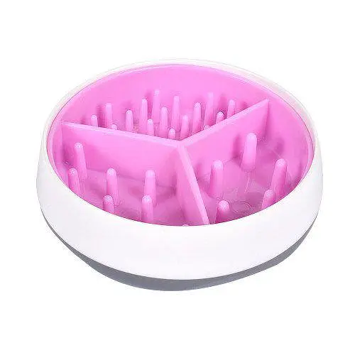 Миски для медленного кормления - это миски для собачьего корма, в которых встроено препятствие. Помогает животному не глотать пищу в спешке, что может приводить к рвоте, диарее и проблемам с пищеварением. Также помогает собакам, страдающим нервными расстройствами из-за отсутствия хозяев рядом, отвлекаться и привыкать к пребыванию дома в одиночестве. Силиконовая вставка вынимается, и миска превращается в обычную классическую миску. Нескользящее дно.
