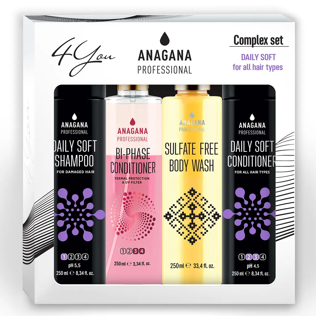 Набор "Ежедневный мягкий" надежно и бережно ухаживает за волосами, возвращает ему блеск, силу и упругость. Восстанавливает естественный баланс кожи головы, облегчает расчесывание.