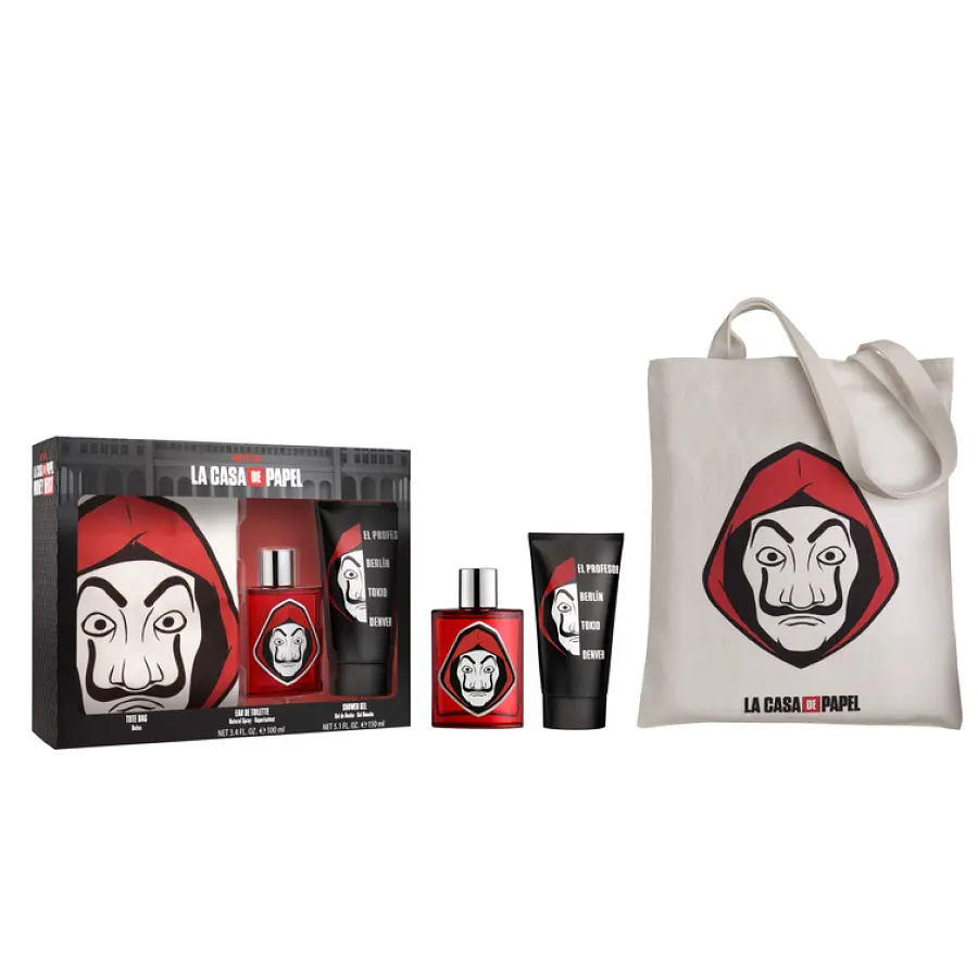 Стильный набор, вдохновленный популярным сериалом Бумажный дом (La Casa de Papel), включающий в себя туалетную воду, гель для душа и эксклюзивный шопер с культовой маской Дали.