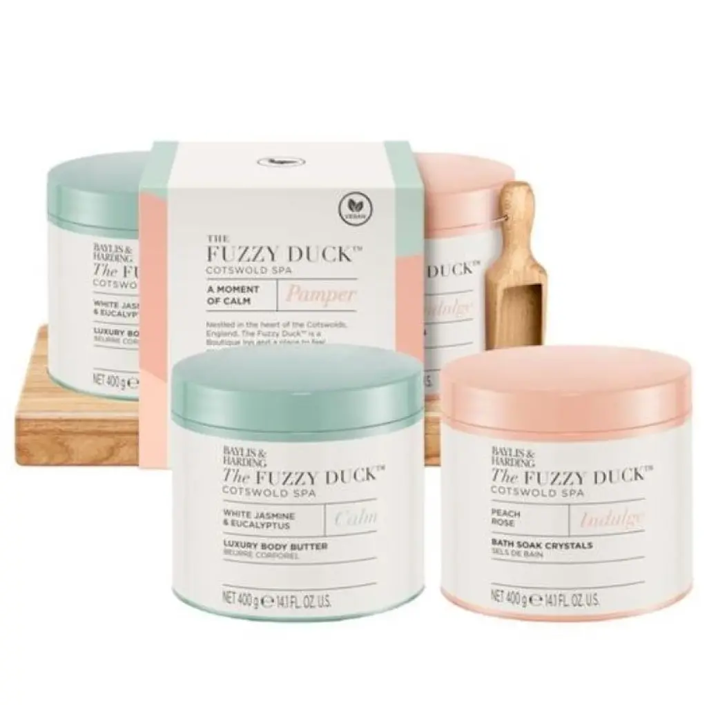 Набор A Moment of Calm от Baylis & Harding - это идеальное сочетание роскошных средств для тела, созданных для успокоения и релаксации. Все продукты линейки The Fuzzy Duck обладают волшебными ароматами, что поможет отдохнуть после напряженного рабочего дня. Это желанный подарок для себя или для близких, который позволит почувствовать незабываемые моменты покоя и комфорта, делая обычный уход за телом особенным.