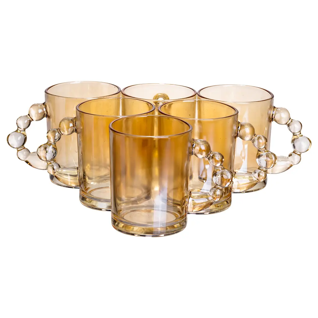 Набор стеклянных чашек с оригинальной ручкой в форме жемчужин - это сочетание изысканного дизайна и практичности. Прозрачное термостойкое стекло подчеркивает цвет напитка и придает сервировке легкость и изящество. Уникальная форма ручки делает чашку не только удобной, но стильной деталью любого стола.