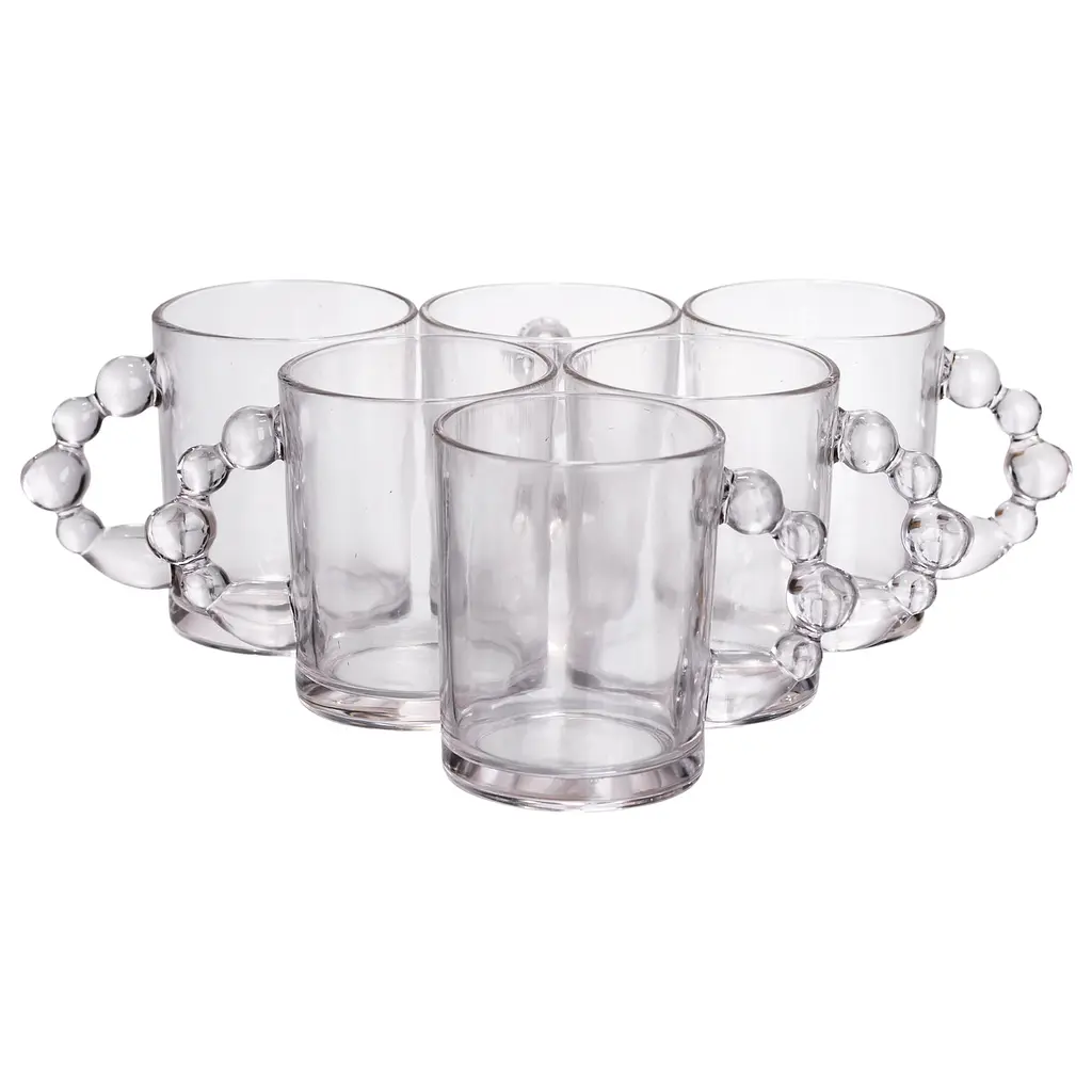 Набор стеклянных чашек с оригинальной ручкой в форме жемчужин - это сочетание изысканного дизайна и практичности. Прозрачное термостойкое стекло подчеркивает цвет напитка и придает сервировке легкость и изящество. Уникальная форма ручки делает чашку не только удобной, но стильной деталью любого стола.