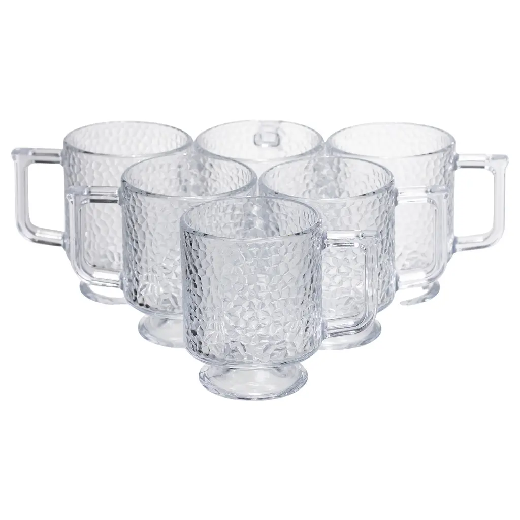 Набор стеклянных чашек с молотковой фактурой – это сочетание утонченного дизайна, практичности и комфорта. Прозрачное рельефное стекло хорошо переливается в свете, подчеркивая эстетику каждого напитка. Такие чашки создают уютную атмосферу и идеально подойдут как дома, так и кафе.