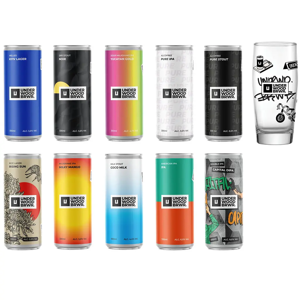 Underwood Brewery – это современный украинский крафт из Киева: свежие ингредиенты, смелые эксперименты и стильный дизайн. Каждая банка – маленькая история о Киеве и его вайбах.
