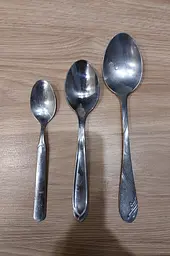 В принципі яка ціна така і якість.Розмір скинула фото(дана ложка посередині) для порівняння з столової і чайної, в руці зручна...тільки після місяця використання появилися вибоїни, після падіння на плитку або я їх раніше не замітила. Якщо бюджет позволяє на довгострокову перспективу раджу брати дорожчі, можливо якісніші будуть