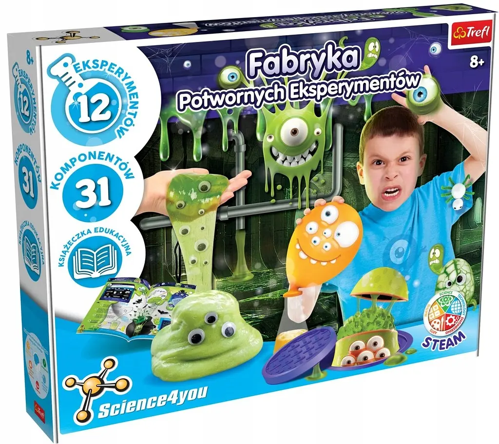 Погрузитесь в мир научных открытий вместе с «Фабрикой экспериментов с монстрами» от Science4you! Этот увлекательный набор позволит узнать, кто такие монстры, откуда возникли первые упоминания о них и какие мутации встречаются в природе. В процессе вы прочитаете интересные, немного жуткие факты и проведете 12 уникальных экспериментов — создадите липкого монстра, глаз циклопа, яйцо дракона и другие удивительные вещи.