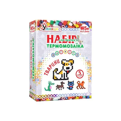 Набор для творчества "Термомозаика: животные" - это мозаика, которая представляет собой пластмассовые разноцветные бусины цилиндрической формы. Эти бусины одеваются на основу - специальные планшеты с короткими штырьками (формы для термомозаики), а потом проглаживаются утюгом через термобумагу (кальку). При высокой температуре верхний слой пластика плавится, и бусины скрепляются между собой. Комплектация: Бусины, планшет для сборки, термобумага, магнитная лента, инструкция Упаковка: коробкаРазмер упаковки: 22 х 17 х 5 см