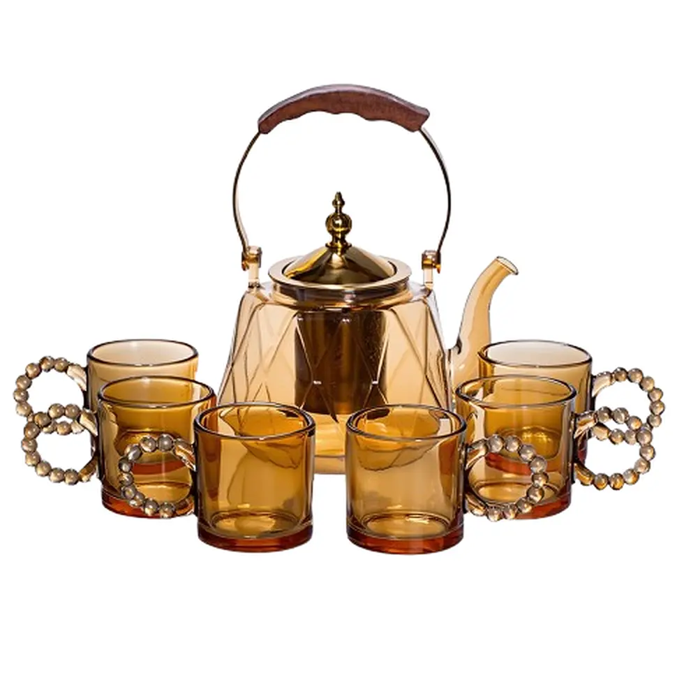 Набор для заваривания чая со стеклянным чайником и шестью чашками.