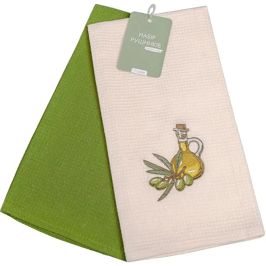 Набор кухонных вафельных полотенец Home Line Оливковое масло порадует стильным дизайном и практичностью в использовании. Это сочетание качества, удобства и эстетичного облика. Изготовленные из 100% хлопка, полотенца имеют вафельную текстуру, которая обеспечивает высокую поглотительную способность и позволяет быстро впитывать влагу.