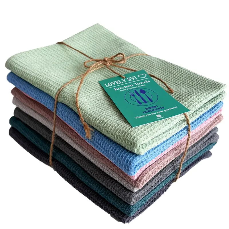 • Легкий уход: кухонные полотенца можно стирать в машине с холодной водой, деликатным циклом, чтобы минимизировать усадку. Не отбеливать. Усадка 12-15% после стирки – норма для вафельной пряжи.