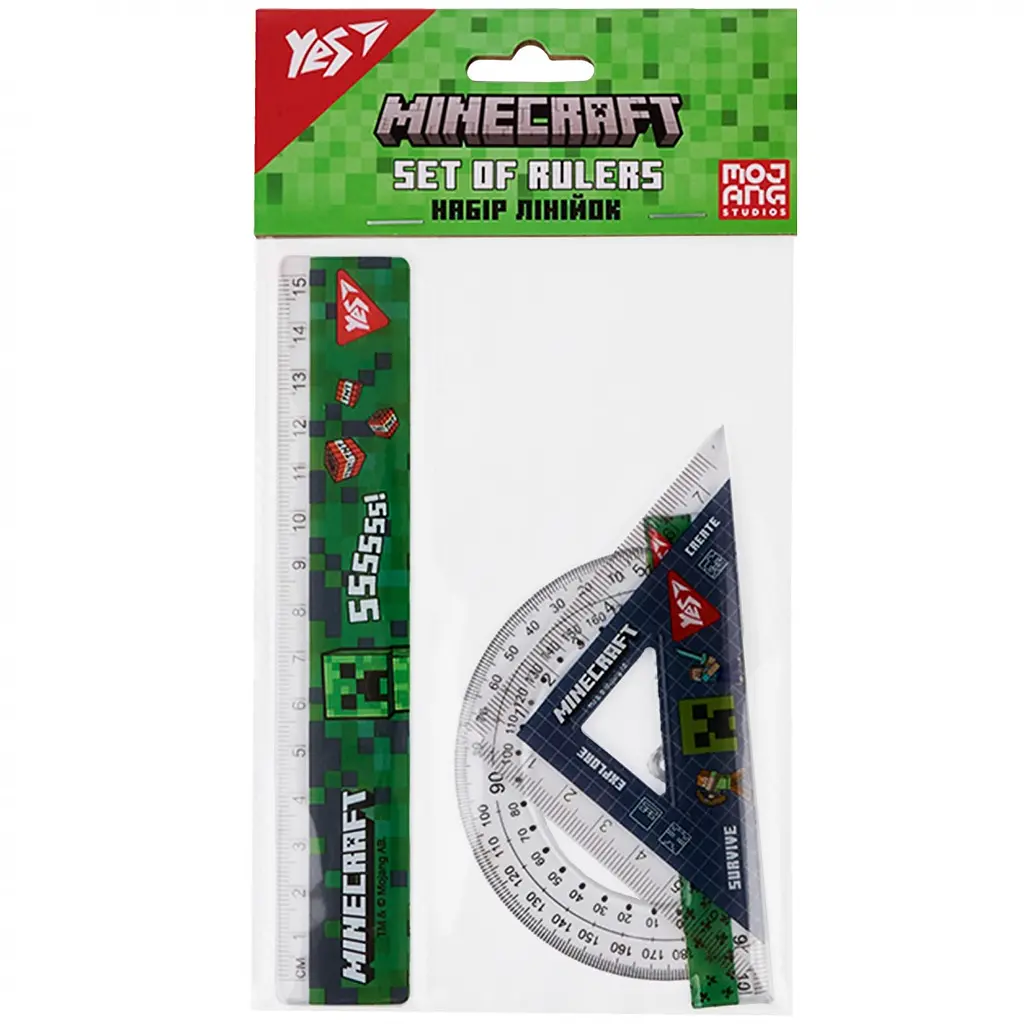 В комплект входят три необходимых инструмента для обучения: линейка, транспортир и равнобедренный треугольник. Яркий дизайн в стиле Minecraft сделает обучение еще более увлекательным и веселым.