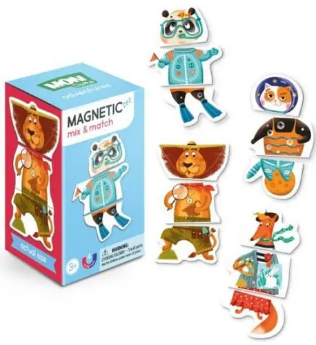 Яркий интересный набор магнитов сделаны в виде животных во время приключений. Комплект состоит из 13 элементов. Собирая готовую картинку из 3 частей малыш будет развивать логику, внимательность, мелкую моторику рук. Для детей старше 3-х лет.Возраст: 3 годаУпаковка: КоробкаЦвет: РазноцветВес в упаковке: 66 гГабариты в упаковке: 7 x 7 x 12 смCтрана производитель: УкраинаМатериал: КомбинированныйКомплектация: 13 магнитов