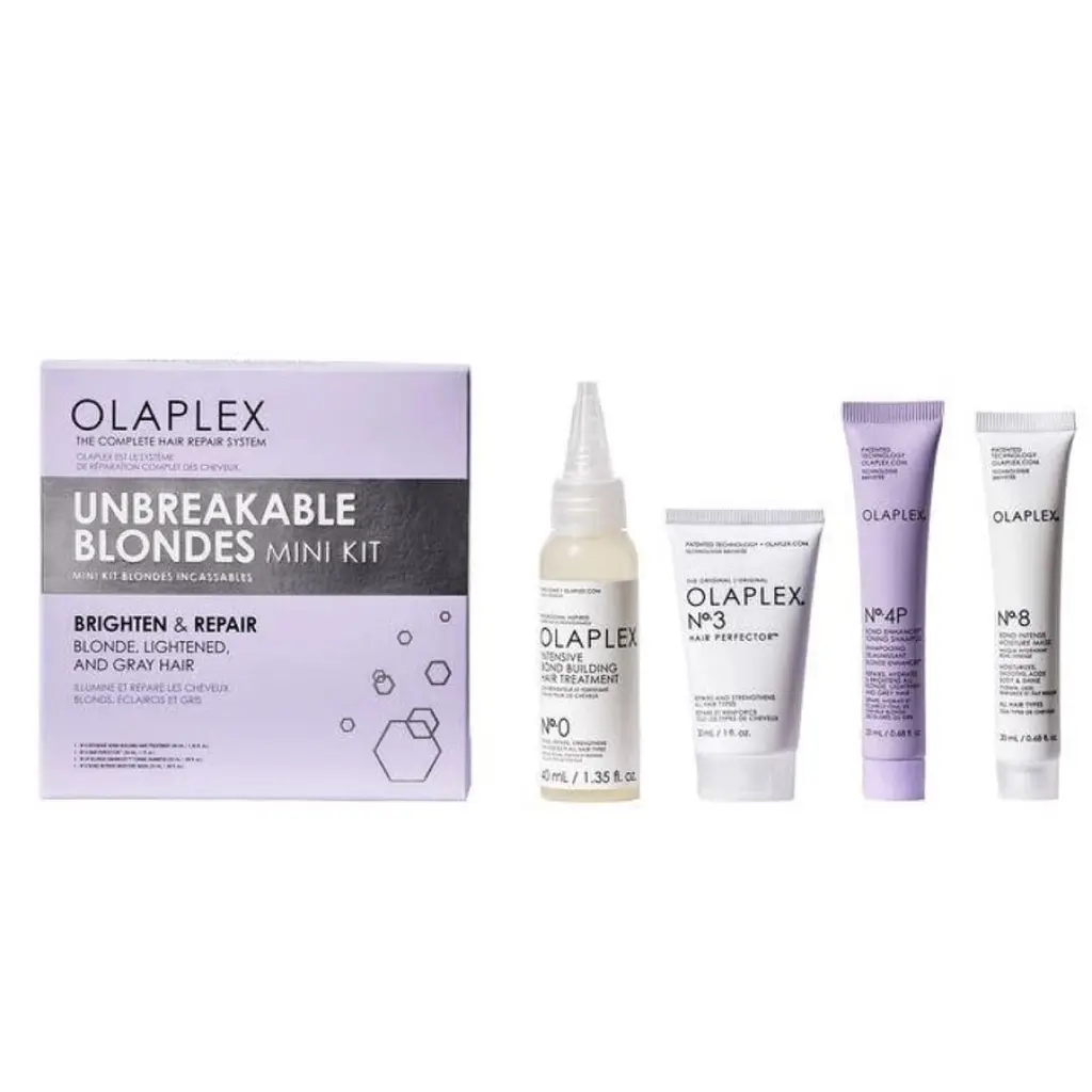 Набор миниатюр Olaplex Unbeakable Blondes Mini Kit разработанный экспертами для восстановления и осветления светлых, осветленных и седых волос.