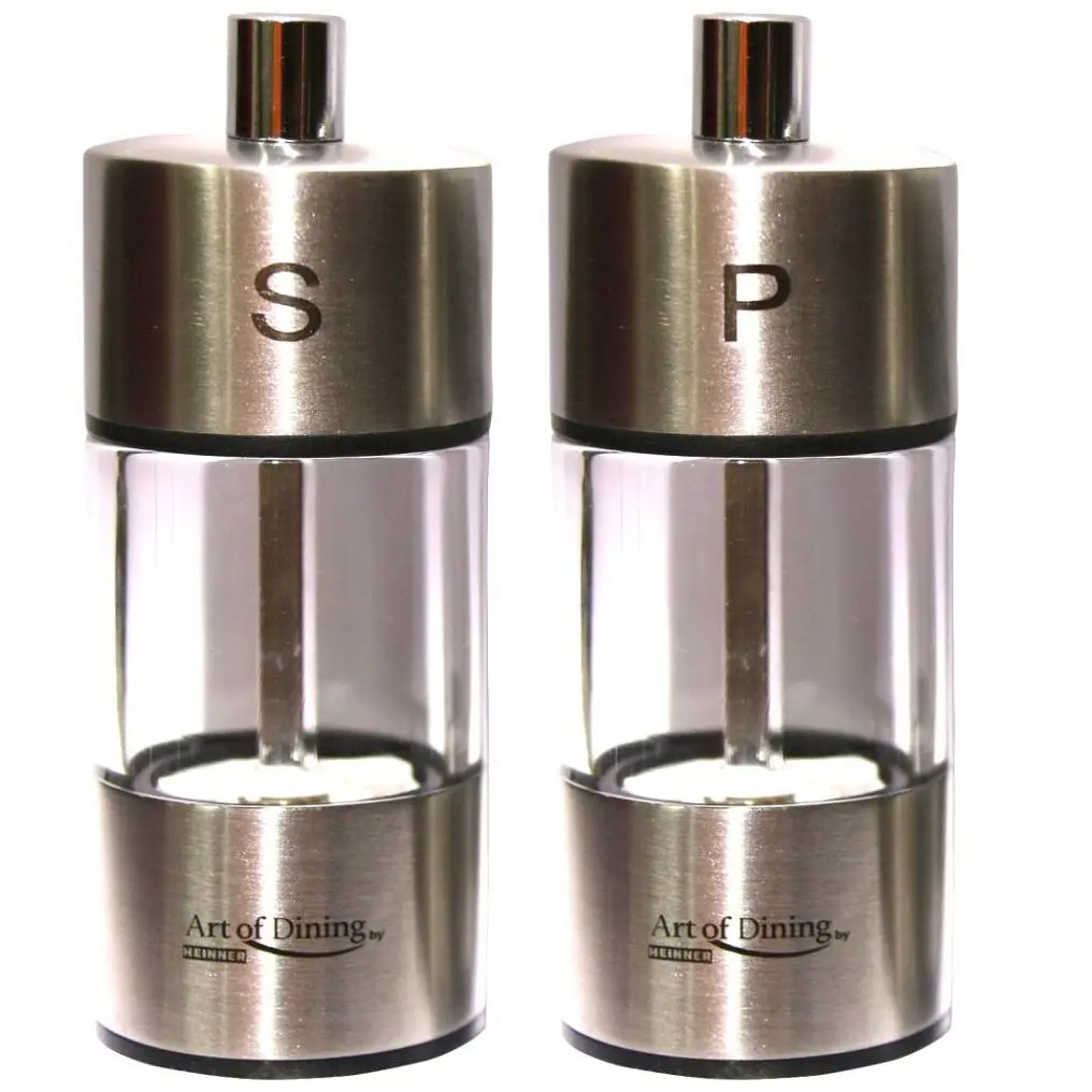 Набор изготовлен из качественной нержавеющей стали с акриловой прозрачной колбой, которая позволяет видеть содержимое и его количество. Механизм из твердой керамики обеспечивает быстрое и равномерное измельчение.