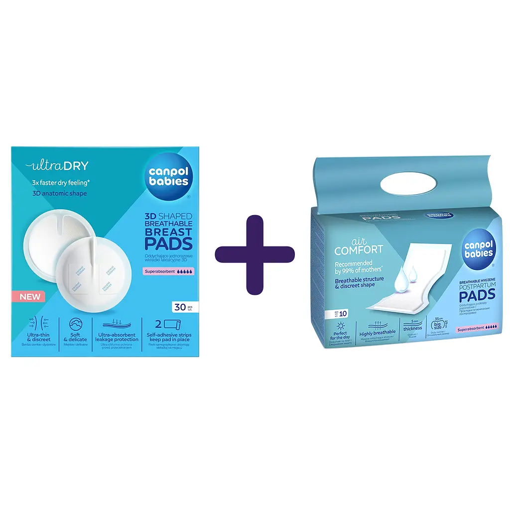 Этот набор создан для комфортного ухода в послеродовой период. Одноразовые лактационные вкладыши Canpol babies обеспечивают сухость и защиту во время грудного вскармливания. Послеродовые быстро впитывающие прокладки помогают чувствовать себя уверенно в первые дни после родов. Вместе они формируют практичный и удобный комплект для молодой мамы.
