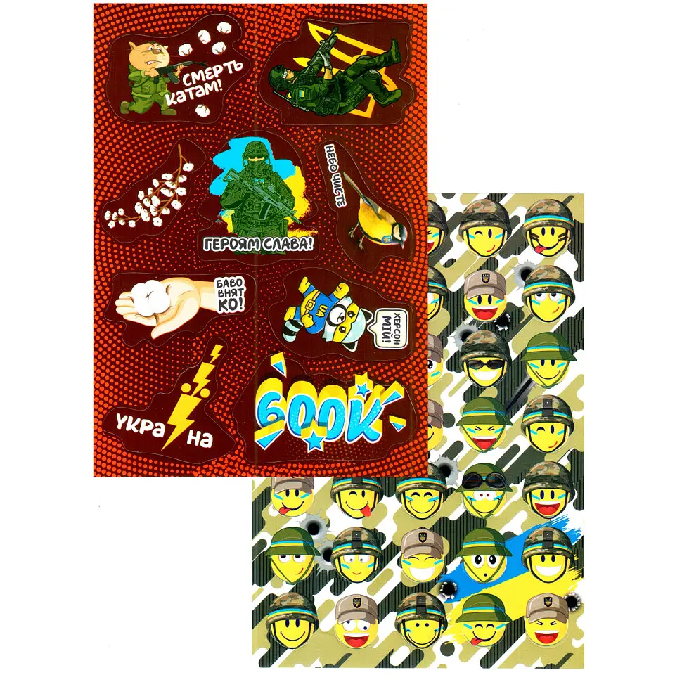 Набор наклеек состоит из двух листов с наклейкой на патриотическую тематику. Размер одного листа А5