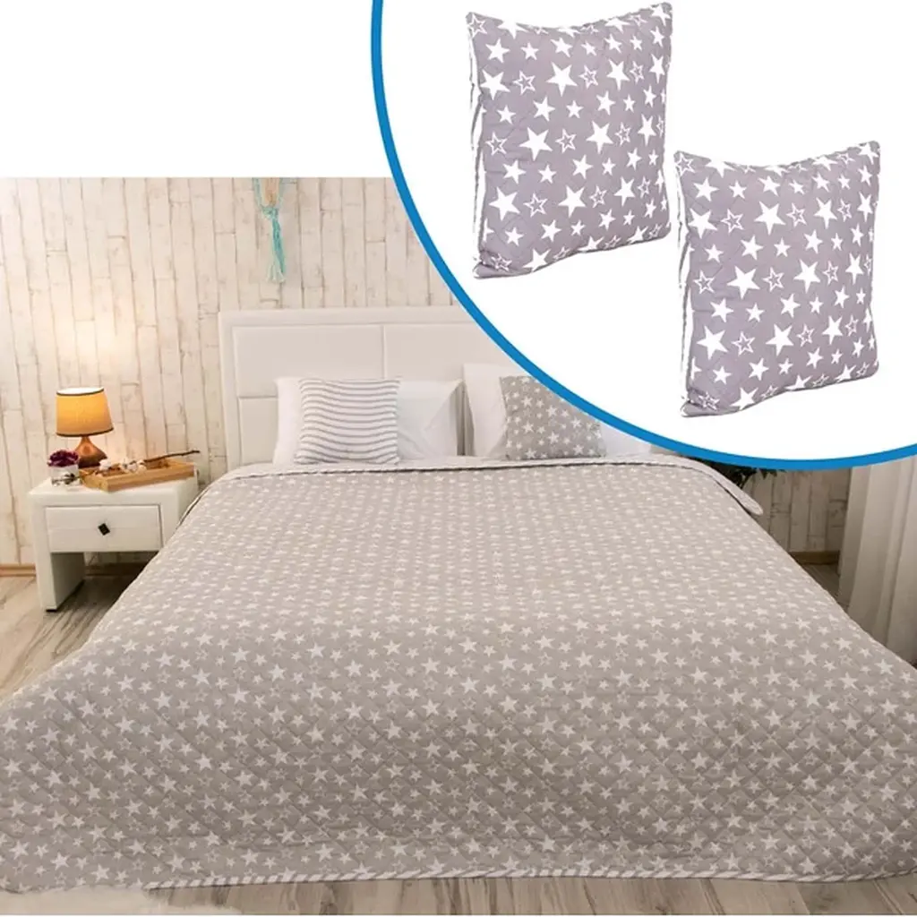 Набор от ТМ Руно: покрывало 212×240 см + 2 декоративные подушки 40×40 см – это стильное и практичное решение для оформления спальни или гостиной. Комплект придает интерьеру уют, гармонию и завершенный вид.