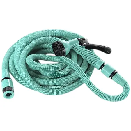 Шланг изготовлен из качественного латекса, который обеспечивает высокую эластичность, устойчивость к разрывам и долгий срок эксплуатации. Он компактен в хранении и автоматически сокращается после использования.