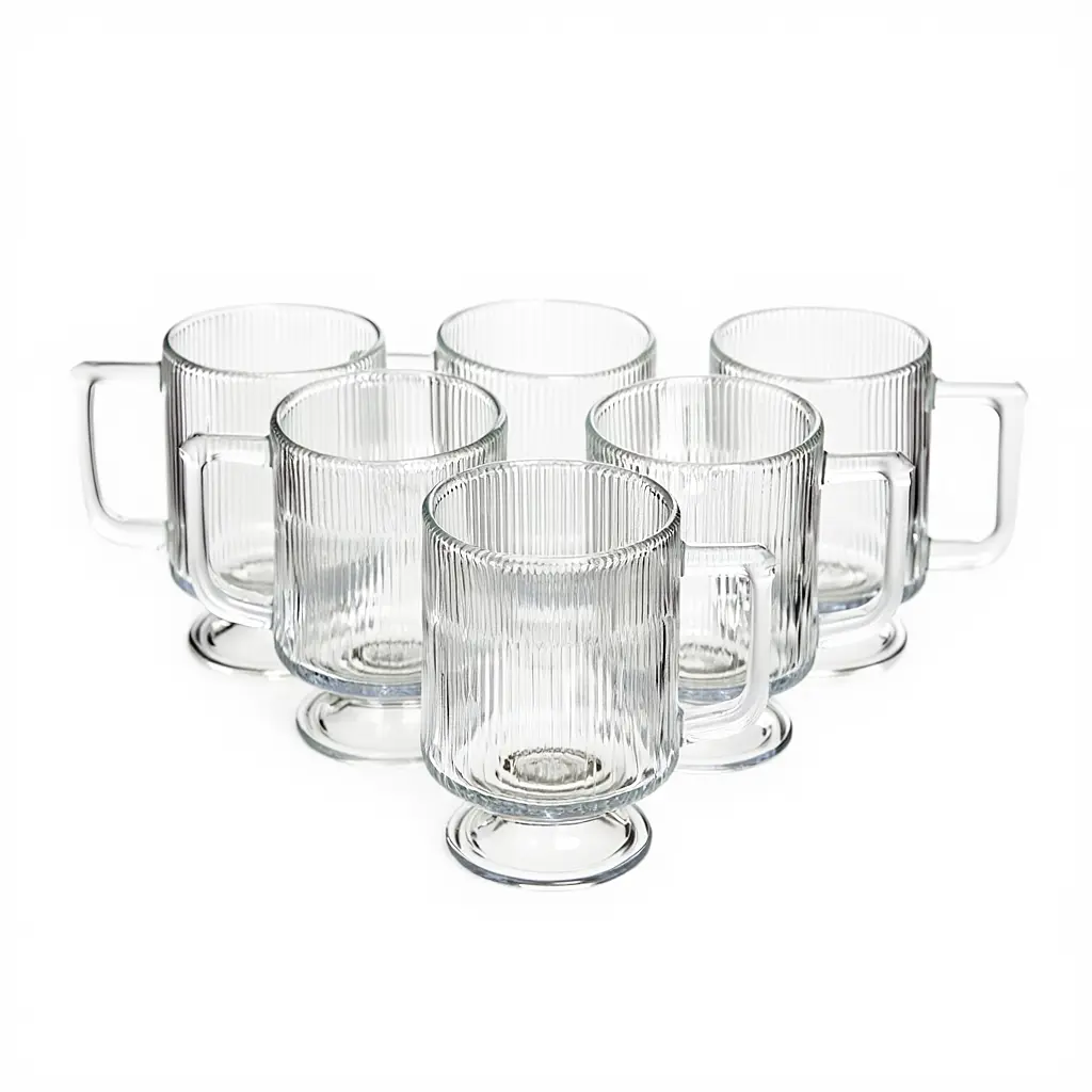Этот набор из шести чашек – воплощение современных трендов в мире посуды. Выполненные из прозрачного стекла с вертикальным рифлением, они выглядят очень стильно и фотогенично. Игра света на рельефных стенках превращает обычное чаепитие в красивый ритуал.