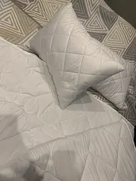 Користуємося набором вже кілька тижнів. Ковдра дійсно зимова, під нею не холодно навіть з вимкненим опаленням. Наповнювач не збивається завдяки стьобанню. Подушки 50х70 підійшли під мої стандартні наволочки. Після першого делікатного прання все залишилися таким же білосніжними, катишків немає. Набір прийшов охайно запакованим + додаткове пакування в коробці . Дуже задоволена покупкою!
