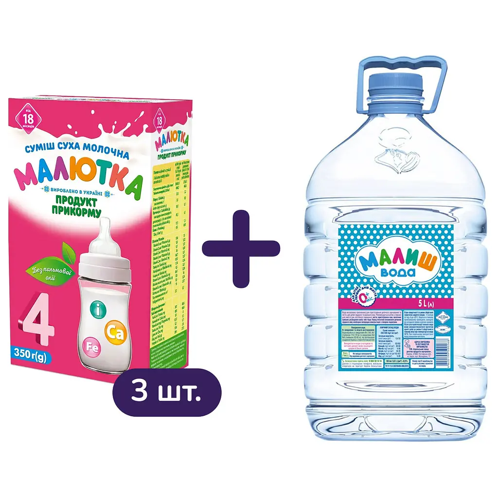 Сухая молочная смесь Малютка 4 с 18 месяцев: молоко коровье обезжиренное 35. 2%, масло (кукурузное), лактоза (из молока), мальтодекстрин, сахарная пудра, витамины (А, D, E, K, C, тиамин, рибофлавин, ниацин, В6, фолиевая кислота, В12, биотин, пантотеновая кислота), минеральные вещества (железо сернокислое, цинк сернокислый, калий йодистый), эмульгатор (соевый лецитин), антиоксидант (аскорбилпальмитат), регулятор кислотности (лимонная кислота).
