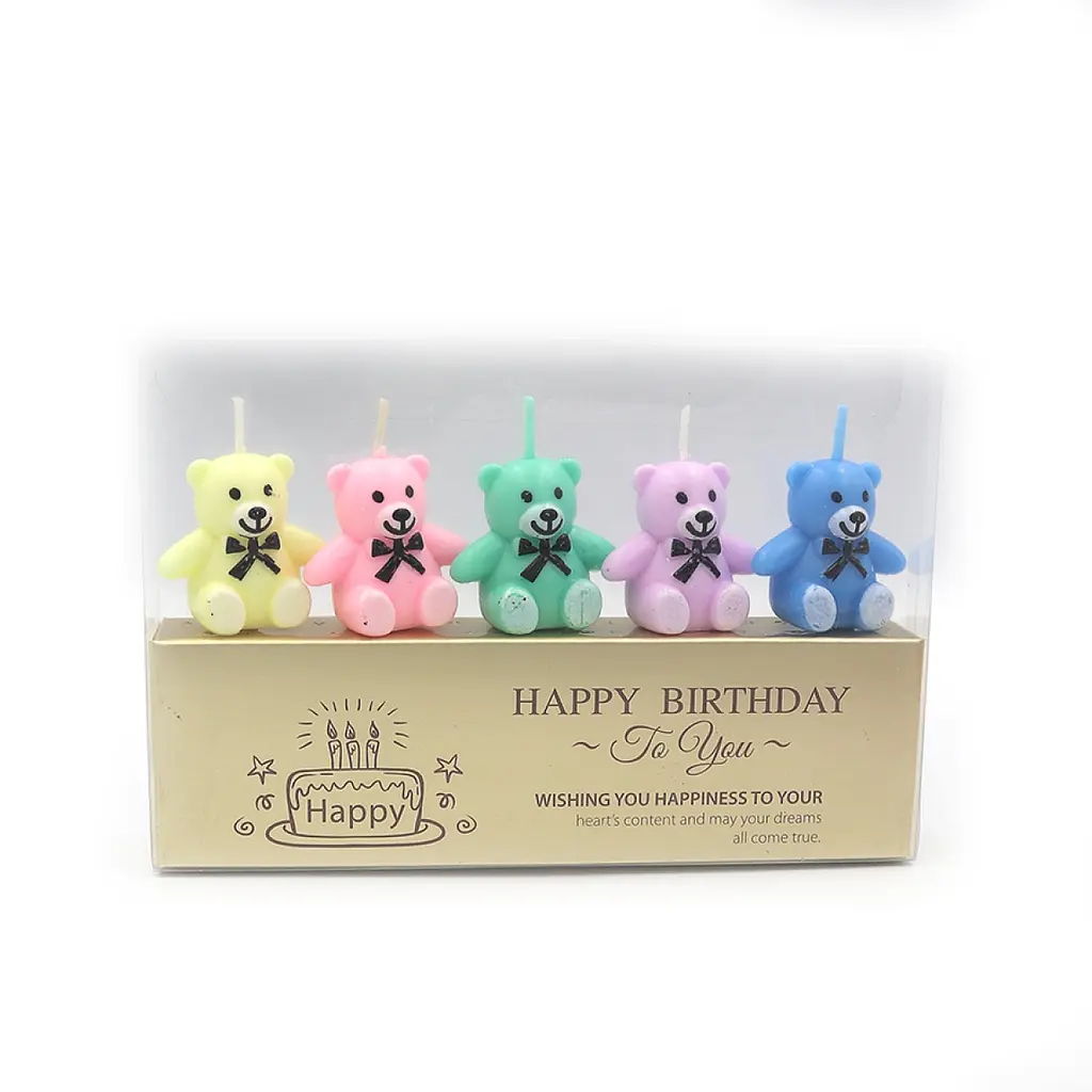 Набор свечей-фигурок для торта Мишка 5 шт 9382DSCN Набор свечей-фигурок для торта Мишка 5 шт мили для детских праздников. Изготовлены из воска, фигурки мишек яркие. Набор из 5 шт для декора. Долговечность обеспечивает горение. Подходит для дней рождения как акцент. Этот набор очаровательный, подарком. Дизайн благодати добавляет. Используется для тортов. Повышает радость. Безопасные материалы.