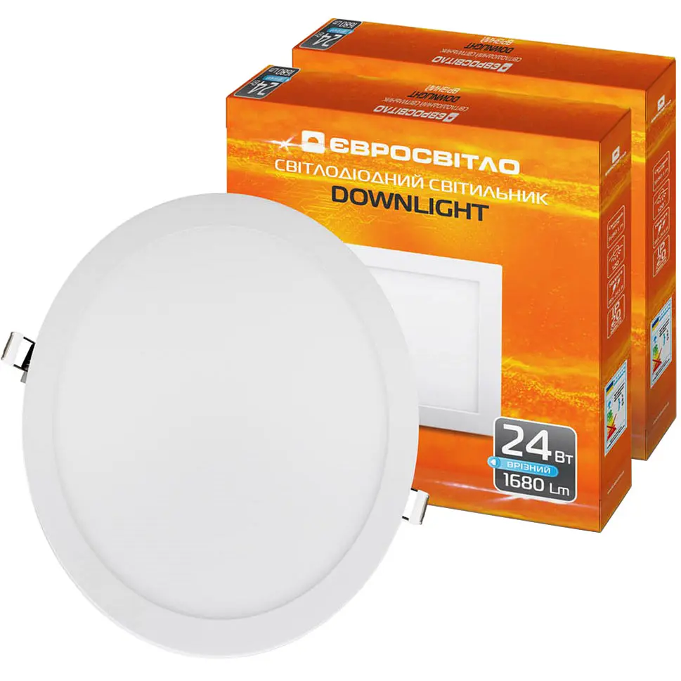 Набор состоит из двух круглых точечных врезных светильников 24Вт LED-R-300-24 4200К от Євросвітло Благодаря мощности 24 Вт и цветовой температуре 4200K эти светильники обеспечивают комфортное нейтральное белое освещение, которое подходит для различных интерьеров.