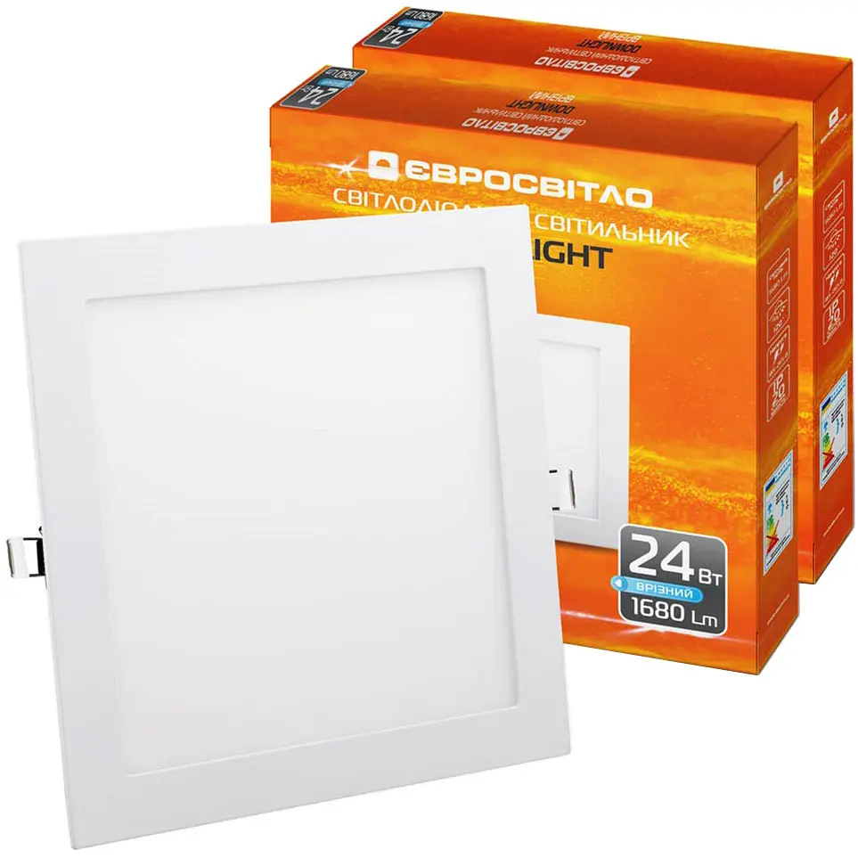 Набор состоит из двух квадратных точечных врезных светильников 24Вт LED-S-300-24 4200К от Євросвітло. Благодаря мощности 24 Вт и цветовой температуре 4200K эти светильники обеспечивают комфортное нейтральное белое освещение, которое подходит для различных интерьеров.