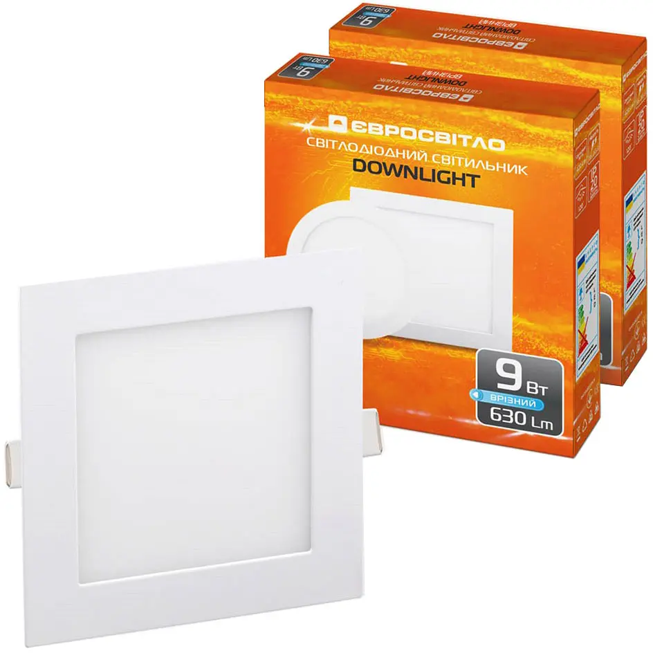 Набор состоит из двух квадратных точечных врезных светильников LED-S-150-9 4200К от Євросвітло. Благодаря мощности 9 Вт и цветовой температуре 4200K эти светильники обеспечивают комфортное нейтральное белое освещение, которое подходит для различных интерьеров.
