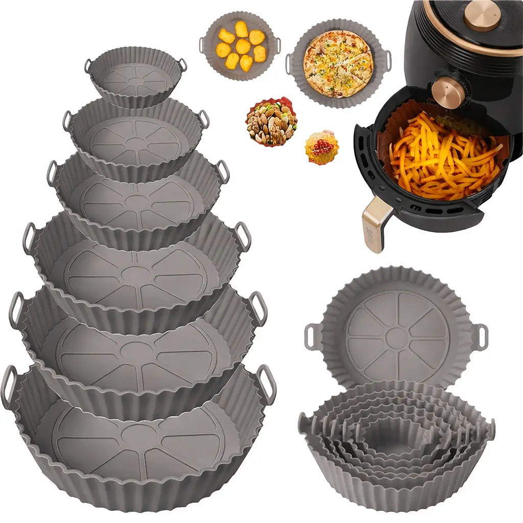 Многоразовые силиконовые формы – это универсальное и практичное решение для приготовления и разогрева различных блюд в аэрофритюрнице, духовке, микроволновке и даже на пару. Изготовленные из пищевого силикона, формы отличаются высокой термостойкостью, антипригарными свойствами и удобством в использовании. Благодаря гибкому материалу и рифленым бортикам, изделия обеспечивают равномерное приготовление пищи и легко очищаются после использования.