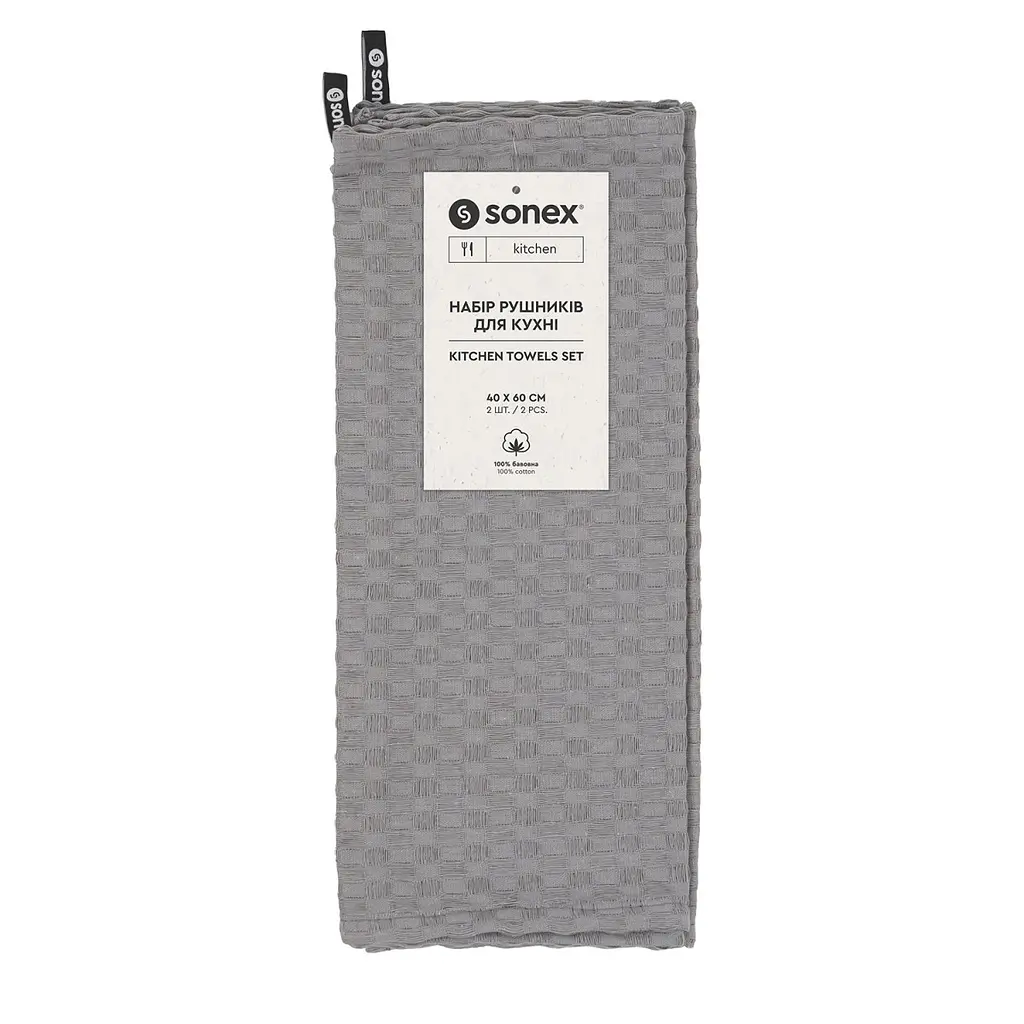 Набор вафельных полотенец для кухни Sonex Cleo - практичный и стильный комплект для вашей кухни. Полотенца изготовлены из высококачественного хлопка в вафельной текстуре, что обеспечивает высокую впитываемость и быстрое высыхание. Комплект включает в себя два полотенца универсального размера 40×60 см в сдержанных и современных цветах - сером и бежевом, которые легко гармонируют с любым кухонным интерьером.