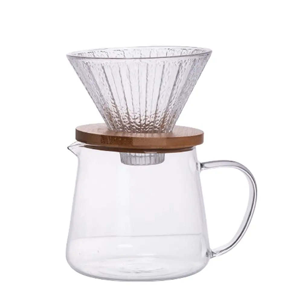 Стеклянный набор для кофе с пуровером - это удобное решение для тех, кто ценит ароматный, насыщенный кофе, приготовленный вручную. Заварник объемом 600 мл изготовлен из крепкого прозрачного стекла, что позволяет наблюдать за процессом заваривания. В комплект входит пуровер, плотно вставляемый в крышку из натурального бамбука - такая комбинация сочетает эстетику природных материалов и функциональность современной посуды.