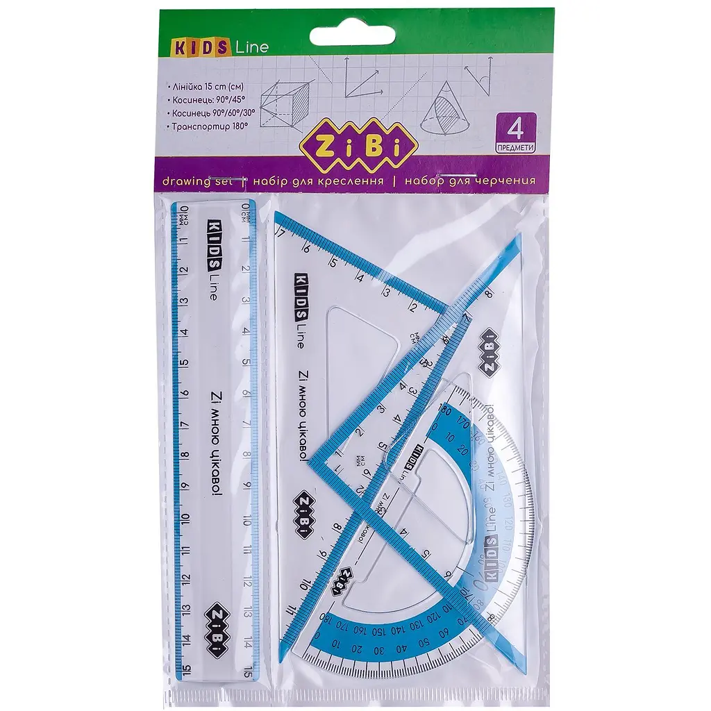 Набор для черчения от ZiBi Kids Line из прозрачного пластика с цветными полосками.