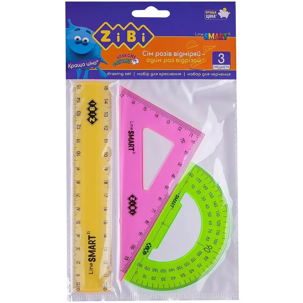 Набор для черчения от ZiBi Smart Line выполнен из тонированного пластика неоновых цветов.